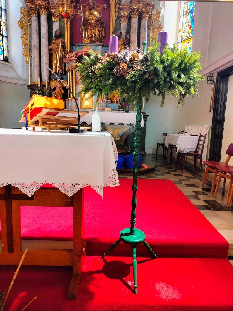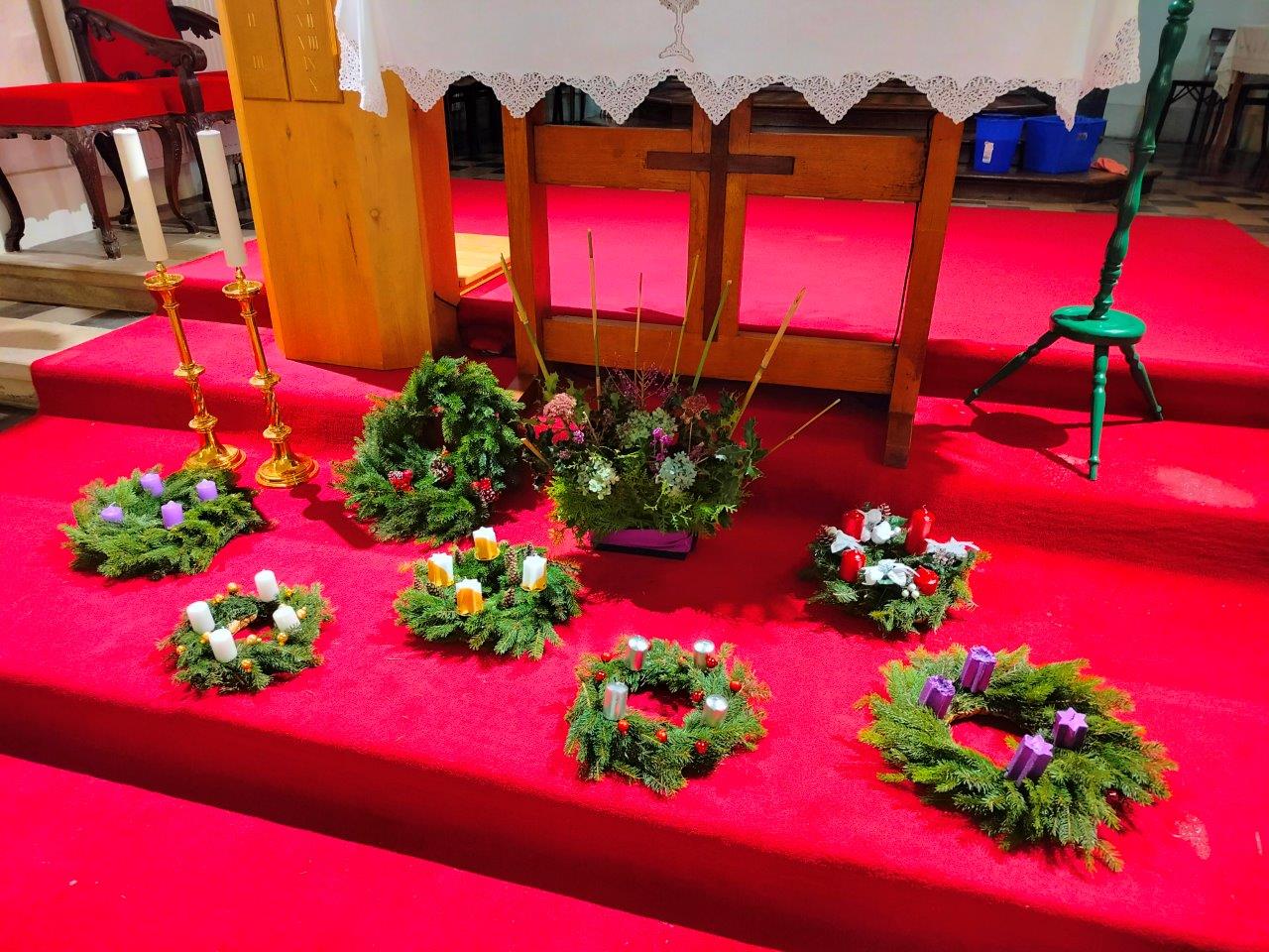 Člani Župnijskega pastoralnega sveta smo pripravili zelenje, prostor in vse potrebno za delo. Ob skodelici čaja in sladkem prigrizku je vzdušje hitro postajalo domače. Medtem ko smo rezali vejice, držali obode, zategovali žičke, lepili okraske in nameščali svečke, je tekla prijetna in sproščena beseda. Nastajali so lepi adventni venčki, mlajši del udeleženk pa je izdelal tudi velikega, župnijskega, ki ga v cerkvi vsako leto postavimo na častno mesto ob oltarni mizi. Na prvo adventno nedeljo je bil – tako kot vsi ostali venčki, razporejeni pred oltarjem – tudi ta blagoslovljen.