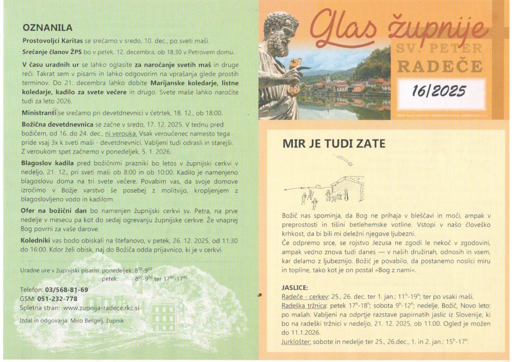 Predavanje bo v torek, 7. oktobra, ob 18.00 v prostorih Doma svetega Petra v Radečah na Starograjski ulici.