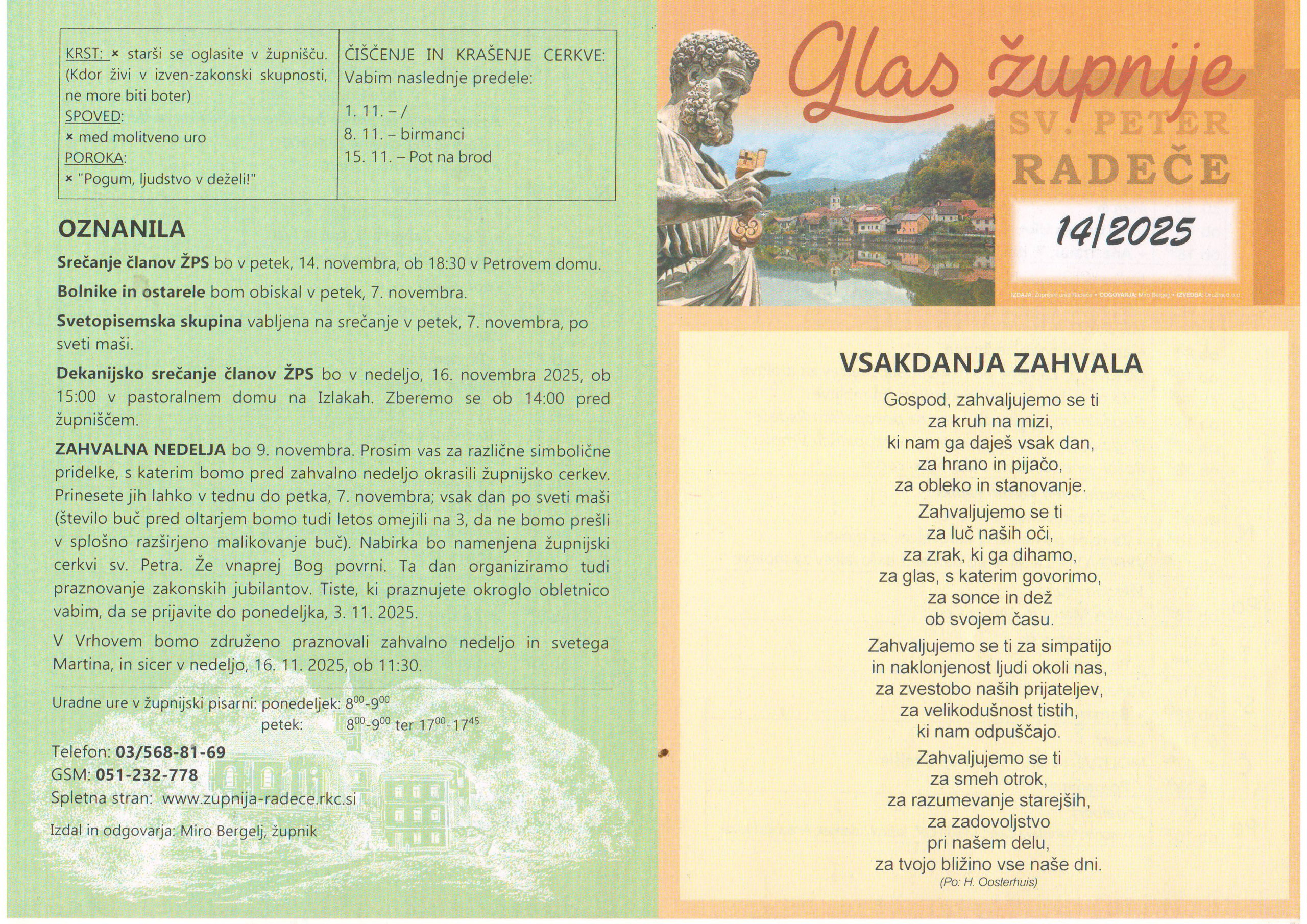 Zbrali so se skoraj vsi prostovoljci naše Karitas, skupaj z obema duhovnikoma. Med nami so bili tudi vabljeni gostje: župan Tomaž Režun in obe tajnici Župnijskih pastoralnih svetov, Mateja Kovač (Radeče) in Sonja Kmetič (Svibno). Občni zbor je vodil predsednik Miro Bergelj, poročilo o delu v letu 2023 je podal tajnik/voditelj ŽK Miran Prnaver, blagajniško poročilo pa blagajnik Drago Kozinc. Sledila je razprava o preteklem delu in sprejem poročil. Nato je bil sprejet še načrt dela za letošnje leto.