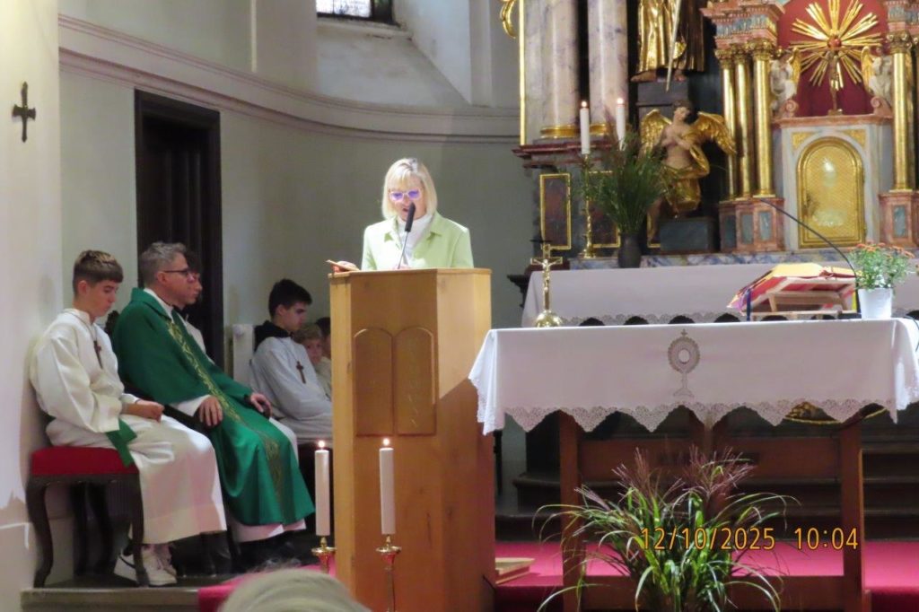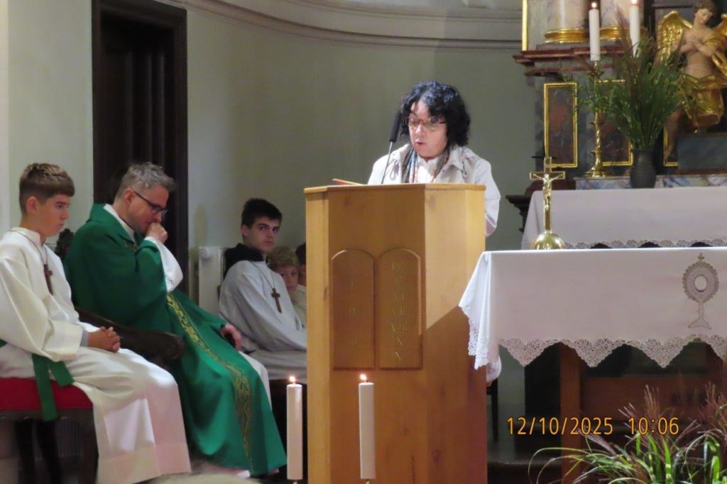 Pri maši so sodelovali prostovoljci Karitas (uvod v mašo, berila, …). V pridigi se je domači gospod župnik Miro Bergelj navezal na evangeljski odlomek, ki je govoril o čudežni ozdravitvi desetih gobavih bolnikov, a se je le eden prišel Jezusu zahvalit za ozdravitev. Poudaril je, kako pomembna je v življenju hvaležnost, saj nas le-ta pripelje k veselju, ki je temelj zadovoljstva v življenju. Spomnil se je tudi na misel papeža Benedikta XVI., ki je nekoč zapisal, da dejansko vsi želimo dolgo življenje. Če pa bi dejansko telesno življenje bilo neskončno dolgo, bi postalo nevzdržno. Zato je smisel dolgega srečnega življenja v prenesenem življenju iz zemeljskega v nebeško.