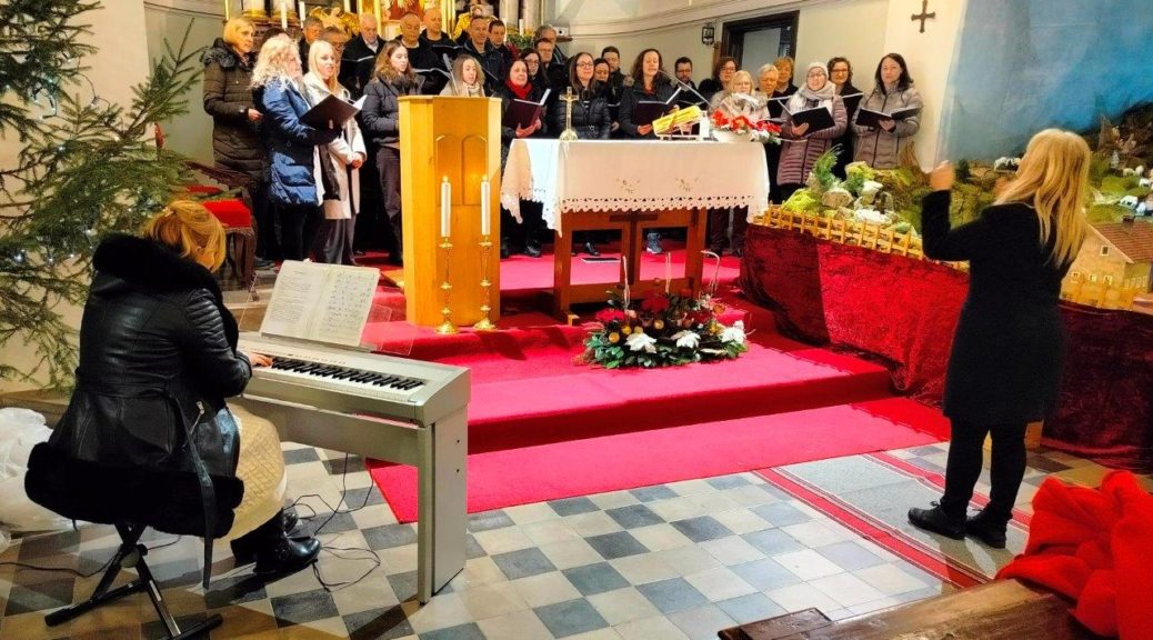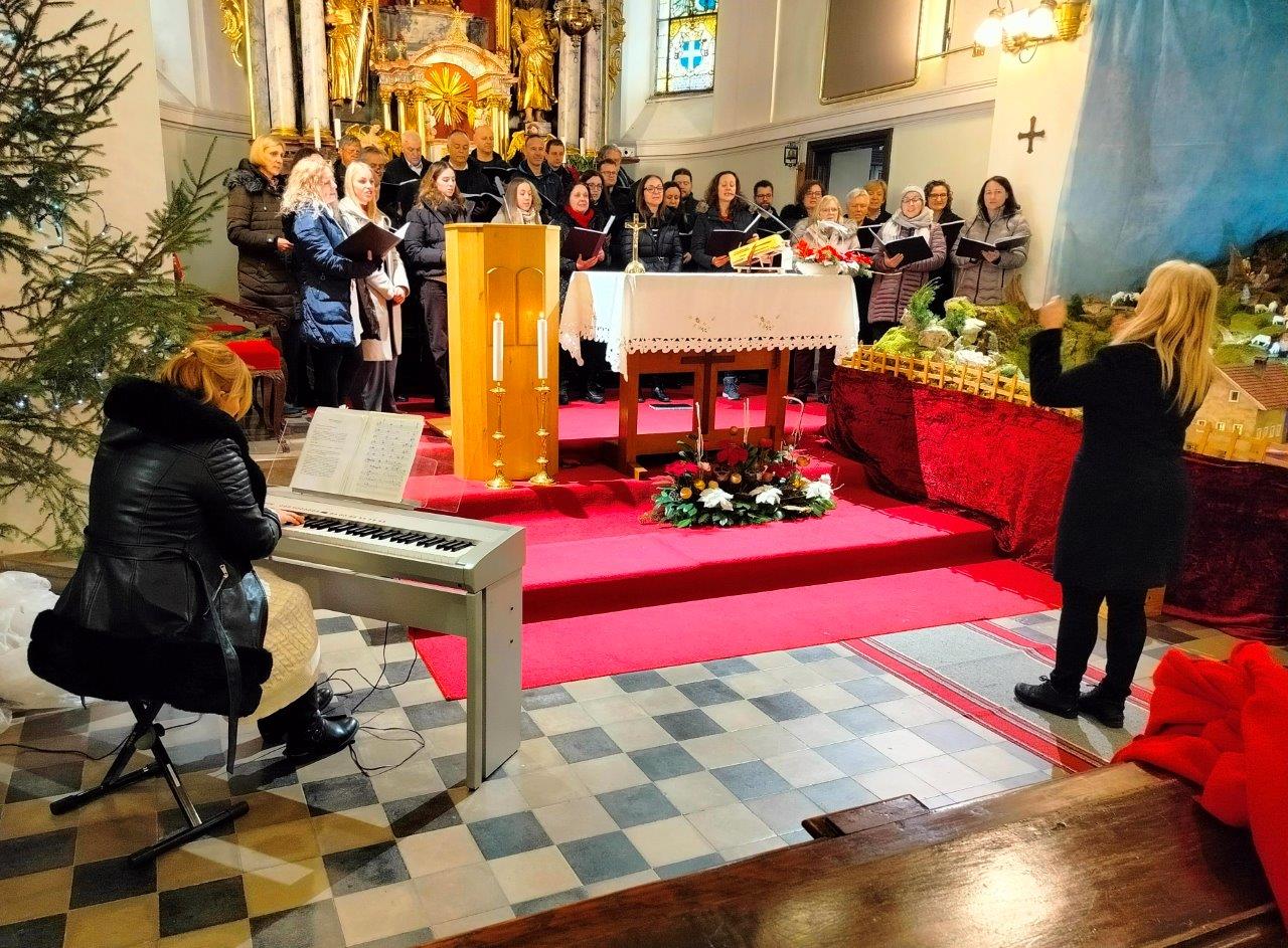 V nedeljo, 4. januarja, smo bili v naši cerkvi priča ubranemu petju Mešanega pevskega zbora Svoboda iz Šoštanja. Zbor je sodeloval že pri sveti maši, po njej pa nadaljeval s pesmimi s svojega božičnega repertoarja ob usklajeni spremljavi pianistke in organistke Klementine Rednak Mežnar. Naš kor je bil – že nekaj časa nevajen tolikšnega števila pevcev – napolnjen do zadnjega kotička, obiskovalci pa očarani nad glasovi, ki so potovali globoko v njihova srca in se vzpenjali visoko pod strop cerkvene ladje.