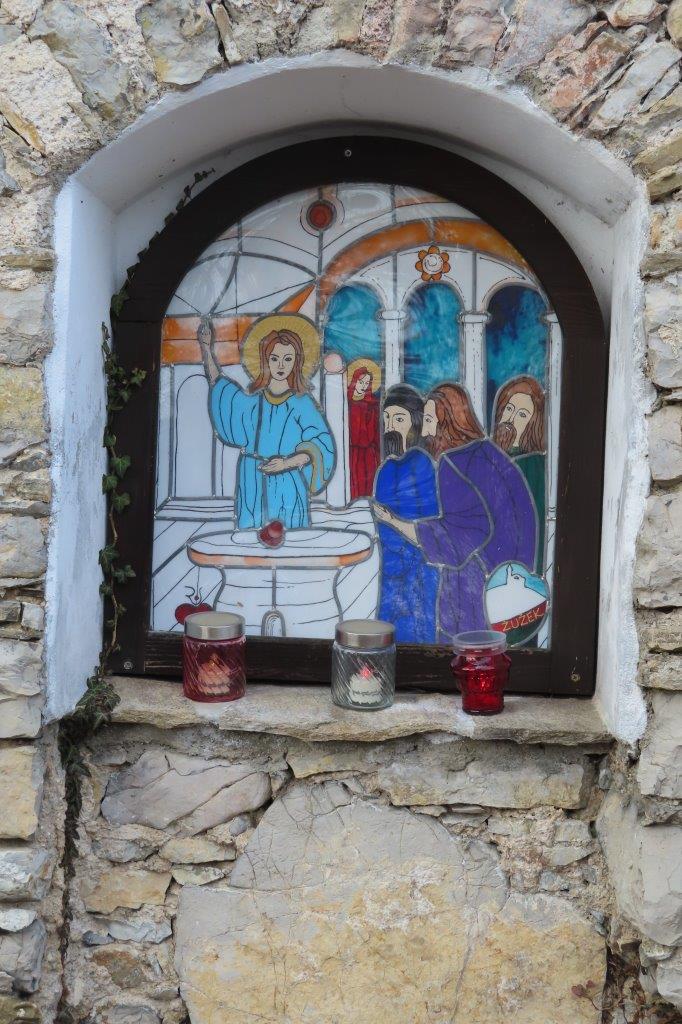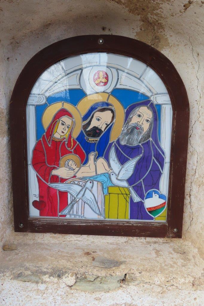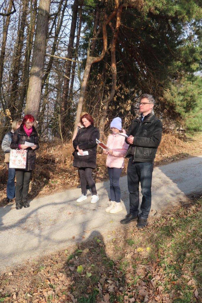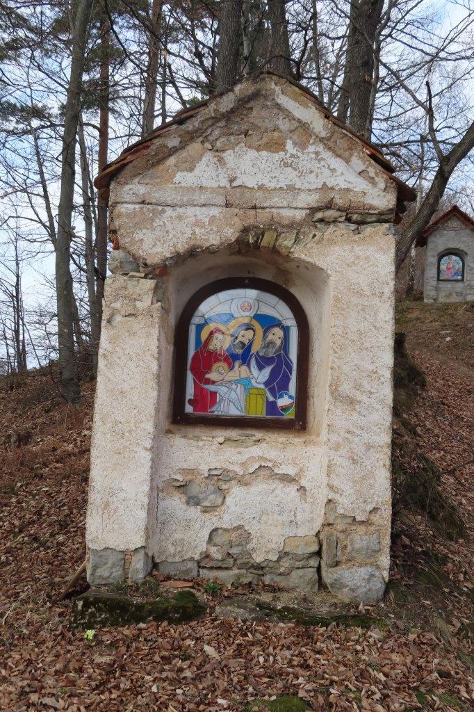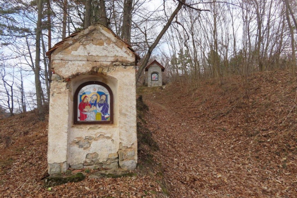Ob poti z Vrha na Topolovec smo se ustavili pri vsaki izmed sedmih zidanih kapelic, ki upodabljajo sedem Marijinih žalosti. Kapelice, pokrite z lepo obnovljenimi opečnatimi strehami, bogatijo poslikave na steklu – vitraži – sevniškega umetnika Rudija Stoparja. Prikazujejo: (i) Jezusovo rojstvo, (ii) beg v Egipt, (iii) Jezusa v templju, (iv) srečanje Jezusa z Marijo na križevem potu, (v) Marijo in apostola Janeza pod križem, (vi) žalostno Mater ob snemanju Jezusa s križa ter (vii) polaganje Jezusa v grob. Do vrha hriba smo skupaj prebrali Križev pot redovnice Jane Rovtar in ter ob premišljevanju o Jezusovem in Marijinem trpljenju iskreno razmišljali tudi o svojih odzivih na preizkušnje in težave, s katerimi se srečujemo v vsakdanjem življenju.