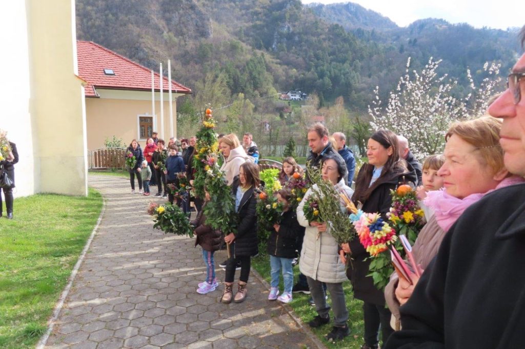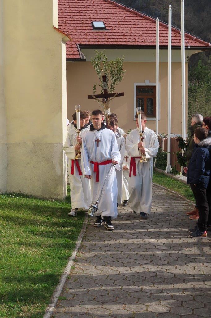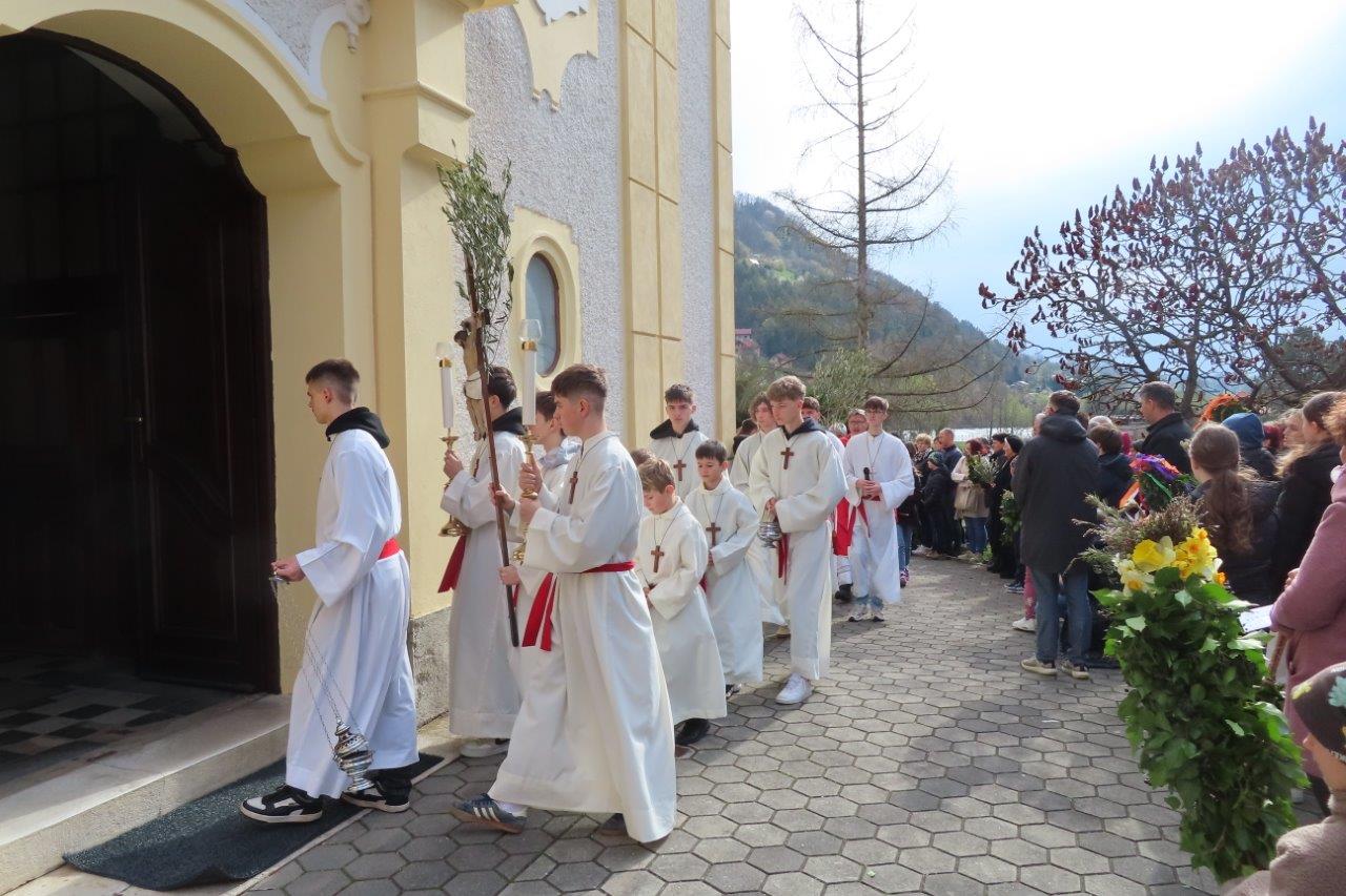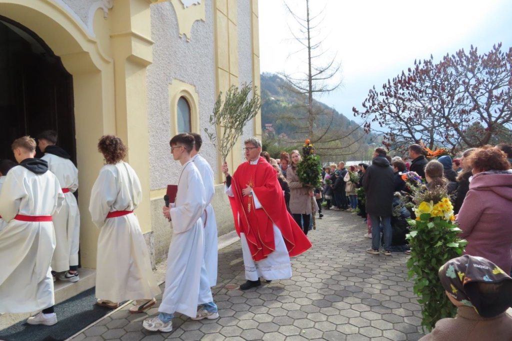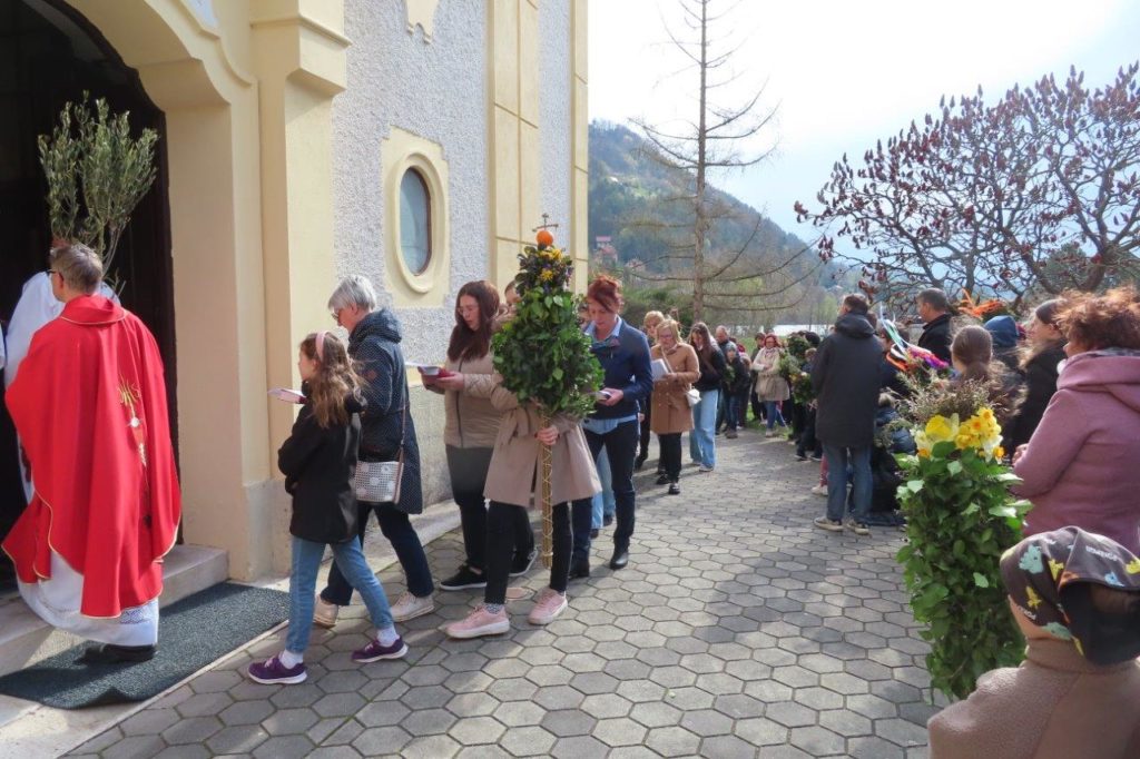 Po blagoslovu je ob spremljavi slavilnih pesmi sledila procesija v cerkev. Med sveto mašo smo prebrali in prisluhnili pasijonu, evangeljskemu poročilu o Jezusovem trpljenju. Vstopili smo v veliki teden.