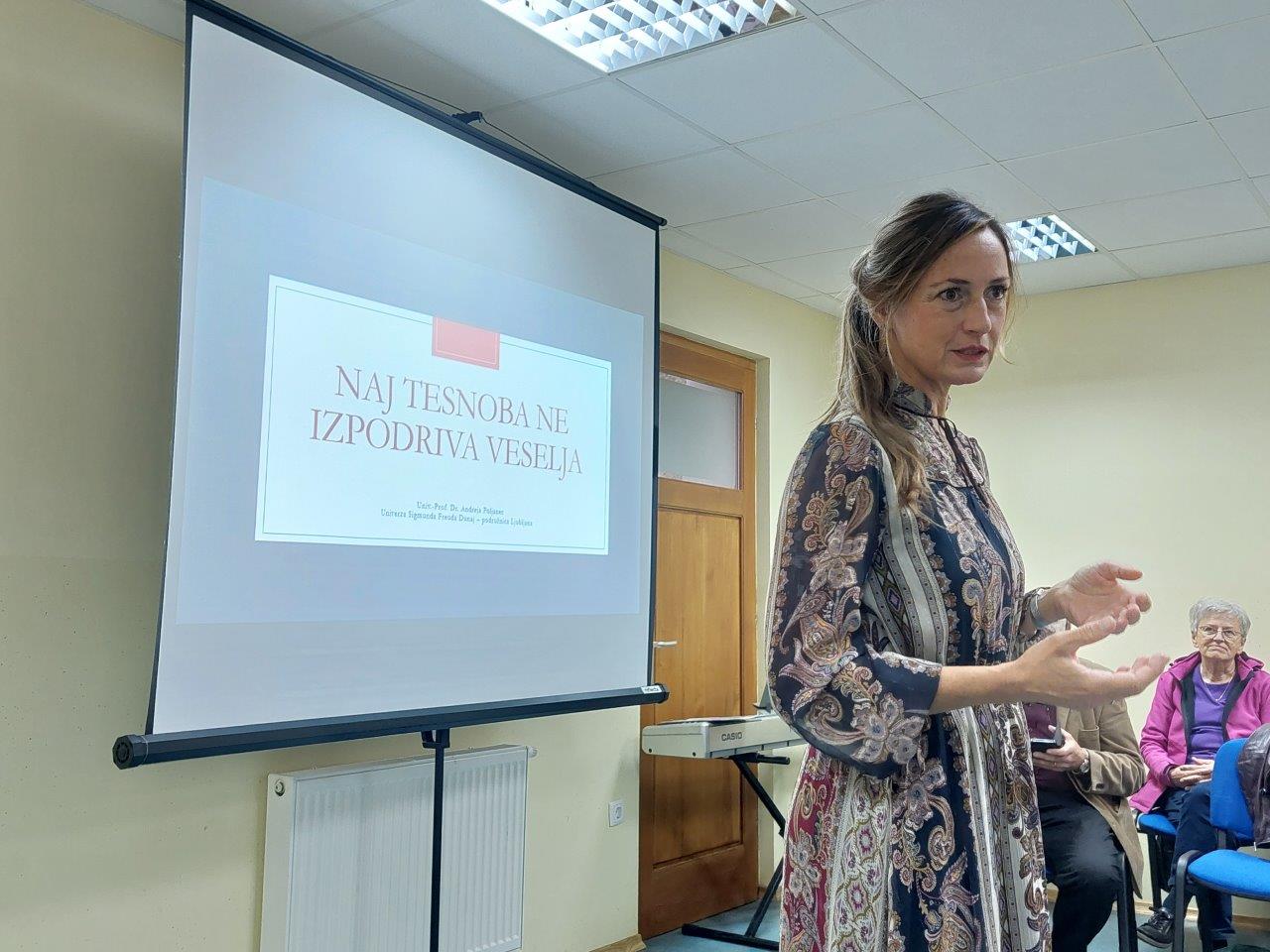 Predavanje dr. Andreje Poljanec dne 7. 10. 2025 na temo tesnobe, tesnobnih stanj in depresije je bilo zelo lepo obiskano. Slabši je bil le odziv naših prosilcev, ki smo jih tudi vabili. Opaziti je bilo tudi obiskovalce iz drugih krajev, kar je bila verjetno posledica obveščanja po socialnih omrežjih.