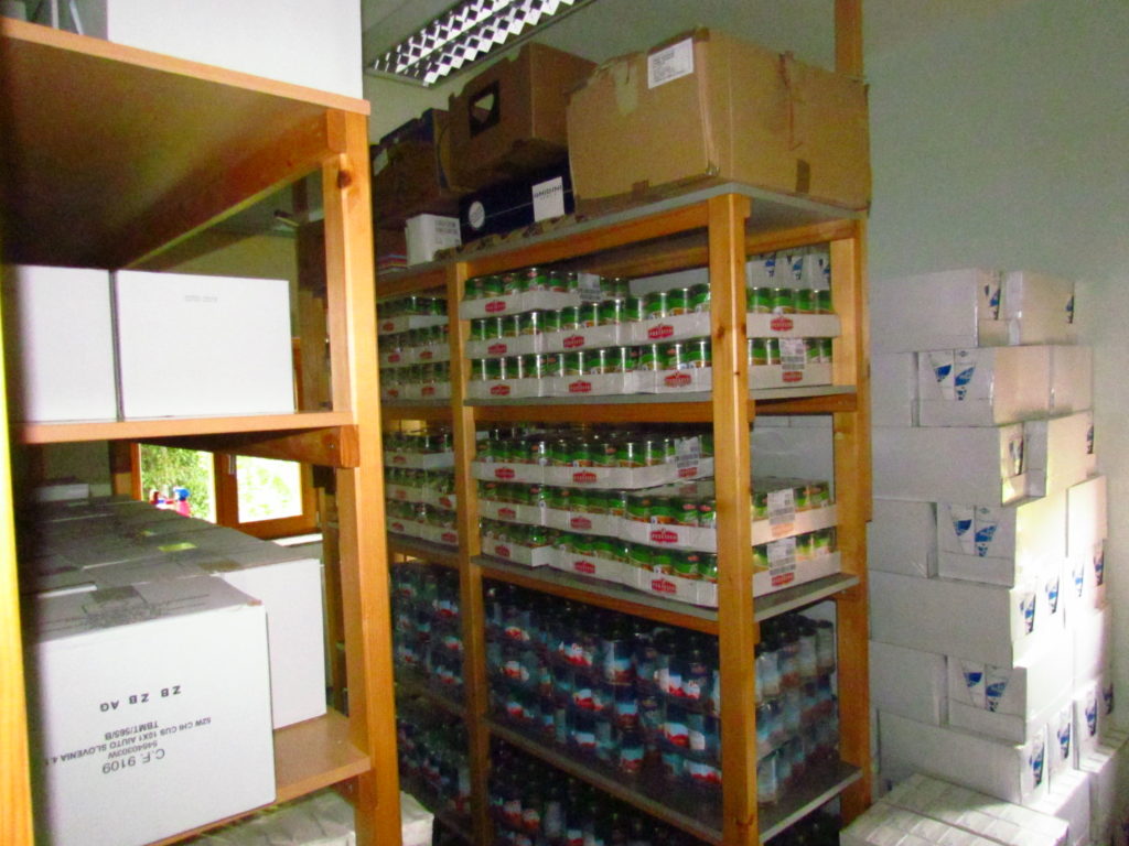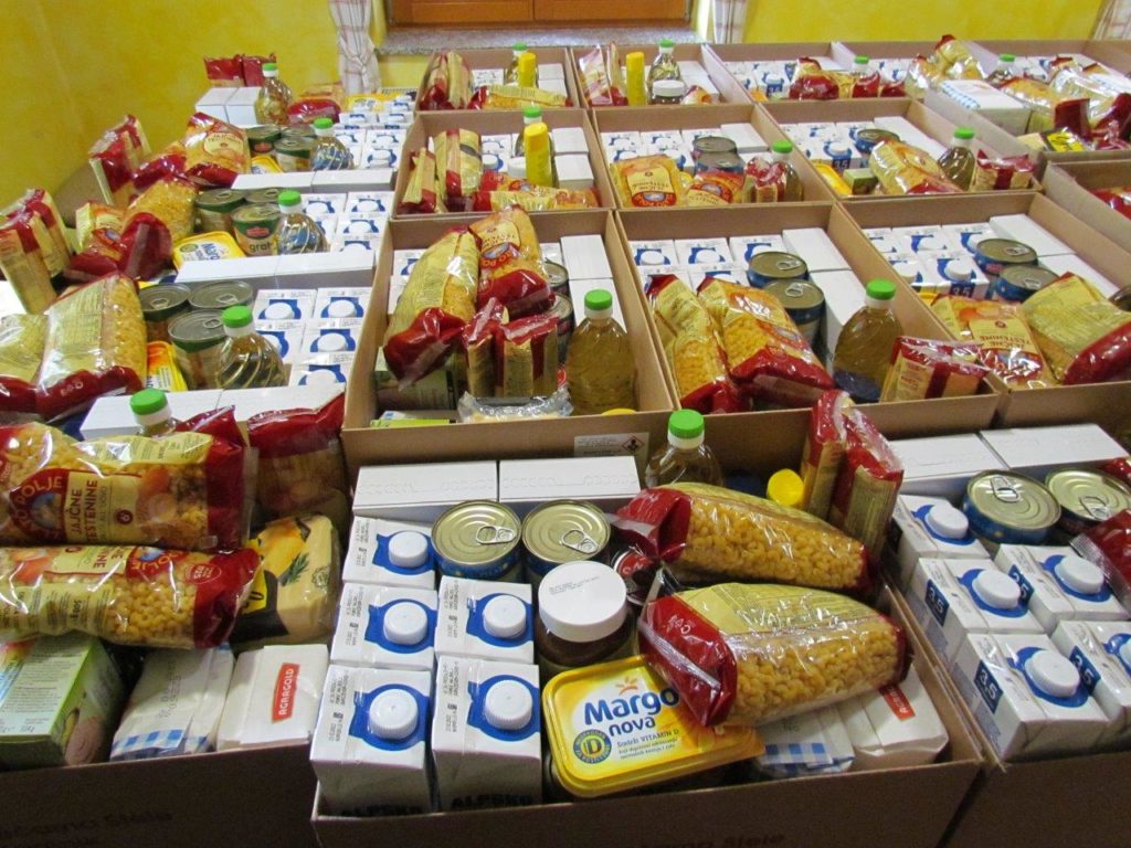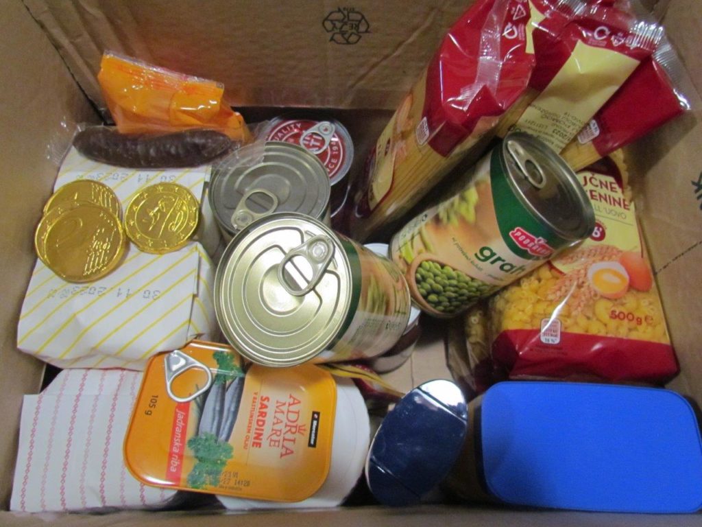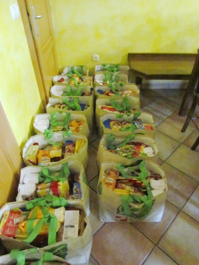 Nadaljevali smo z razdeljevanjem hrane, tako imenovanih »paketov«. Prejeli smo štiri pošiljke take hrane in higienskih pripomočkov, ki pa je bila zelo raznovrstna (tudi do 15 različnih artiklov). V vseh štirih naročilih smo prejeli dvojno količino hrane in higienskih pripomočkov. Tako smo lani hrano delili manjkrat, pa takrat v večjih količinah. Skupna teža te prejete pomoči je znašala približno 4500 kg.